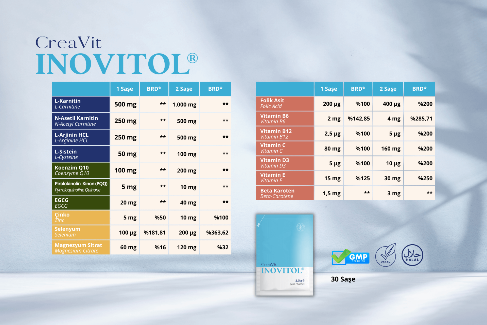 Inovitol®; aminoasit, vitamin, mineraller, Koenzim Q10, EGCG ve PQQ’nun güçlü birlikteliğini sunar!