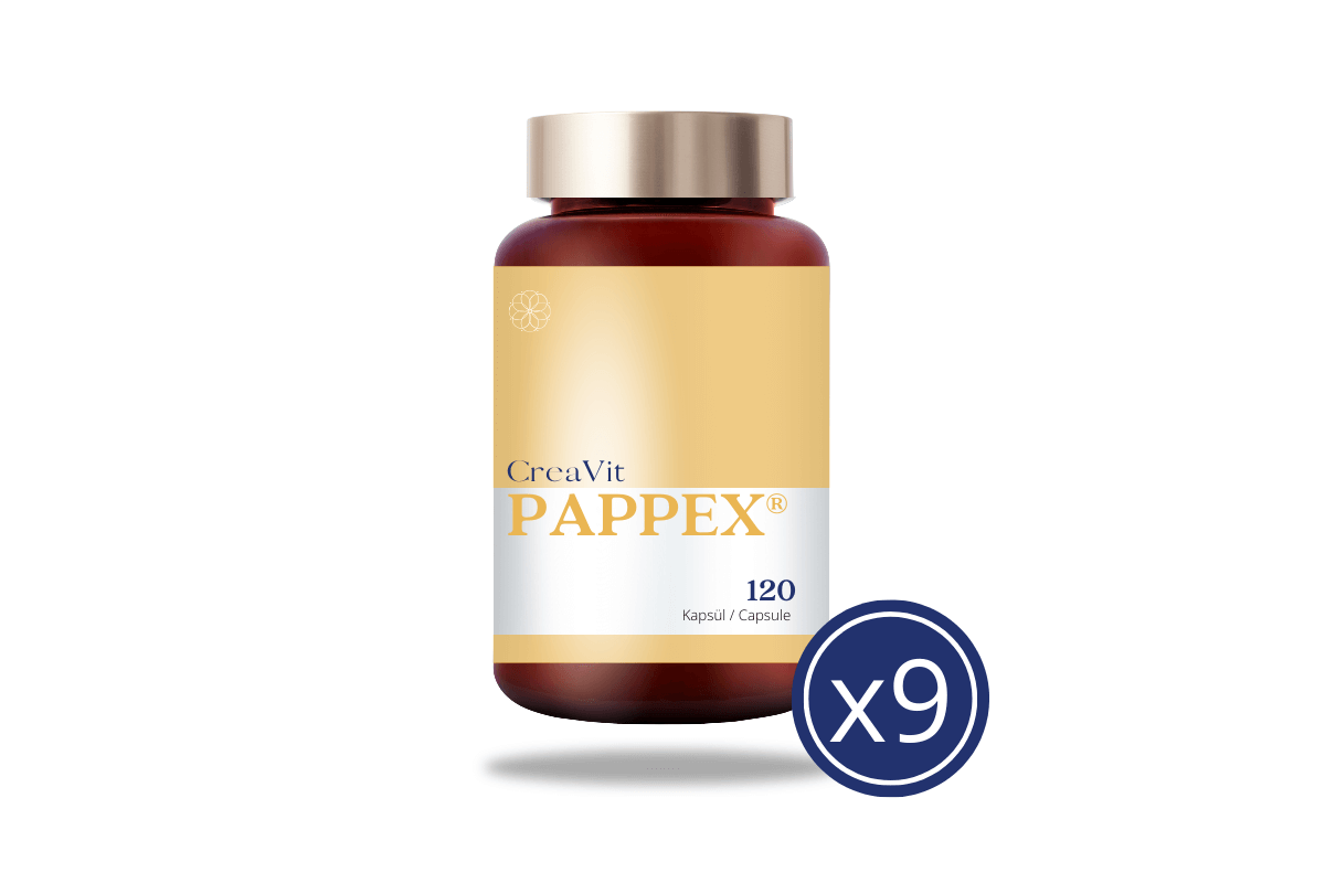 Bu avantajlı paketimiz, günlük 3 gr Active Hexose Correlated Compound kullanımı önerildiğinde, 6 aylık tedaviniz için gerekli 9 kutu CreaVit Pappex® içermektedir.